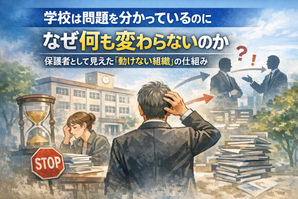 この記事では、 「誰が悪いのか」を探すのではなく、 なぜ学校という組織は動けなくなってしまうのかを、 保護者の立場から整理してみます。
